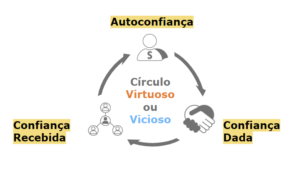 Ciclo Virtuoso: Tendo autoconfiança alta consigo confiar no outro. Oferecendo confiança ao outro, passo a receber mais confiança, retroalimentando positivamente a minha própria autoconfiança.